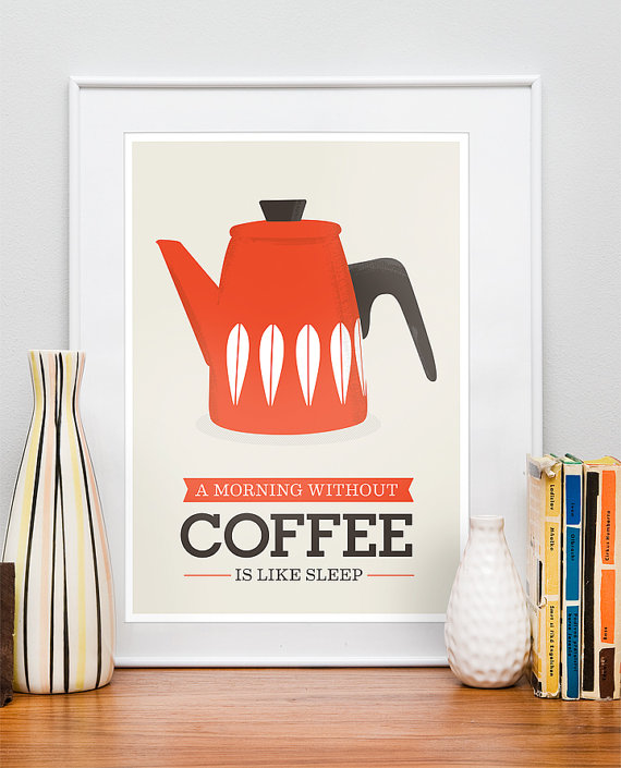 4. A Morning without Coffee Print by “Handz” on Etsy